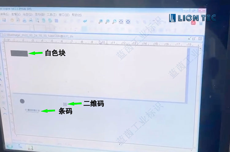 噴印流程如圖所示,要在采樣管側(cè)面先噴上方形的白墨色塊,噴印好之后再噴印上條碼,頂部噴印圓形白墨塊再噴二維碼,三個(gè)部分的噴印都是通過UV噴碼機(jī)完成