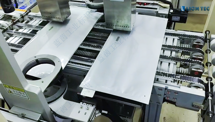 浙江某新能源汽車客戶為滿足軟包動力電池噴碼需求,在藍茵訂購了一套包裝袋噴碼機生產流水線,現(xiàn)已安裝調試成功,進入投產階段。這套軟包動力電池包裝袋噴碼產線設備主要包含了藍茵LT系列UV噴碼機、輸送流水線、視覺檢測系統(tǒng)等。