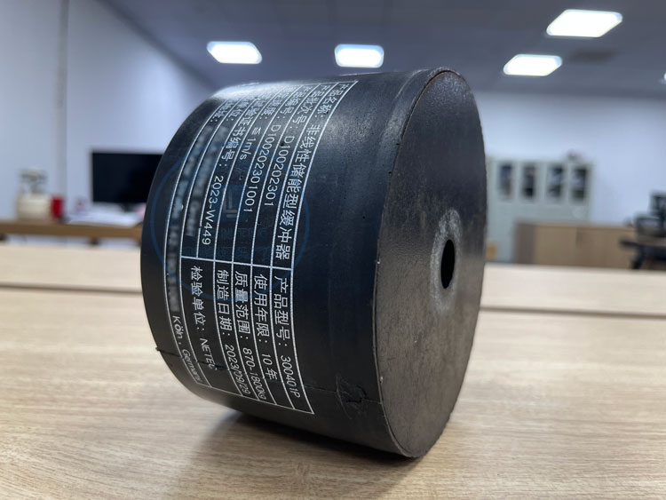 UV噴碼機(jī)在聚氨酯非線性儲(chǔ)能型緩沖器弧面打印表格,搭載自動(dòng)化,打印快速精美