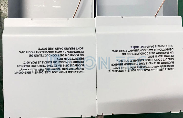 LED燈驅(qū)動(dòng)發(fā)光二極管器件噴碼標(biāo)識(shí)-LED驅(qū)動(dòng)電源交流驅(qū)動(dòng)器-鋁合金面板UV噴碼機(jī)打樣效果圖 打樣尺寸45mm*65mm