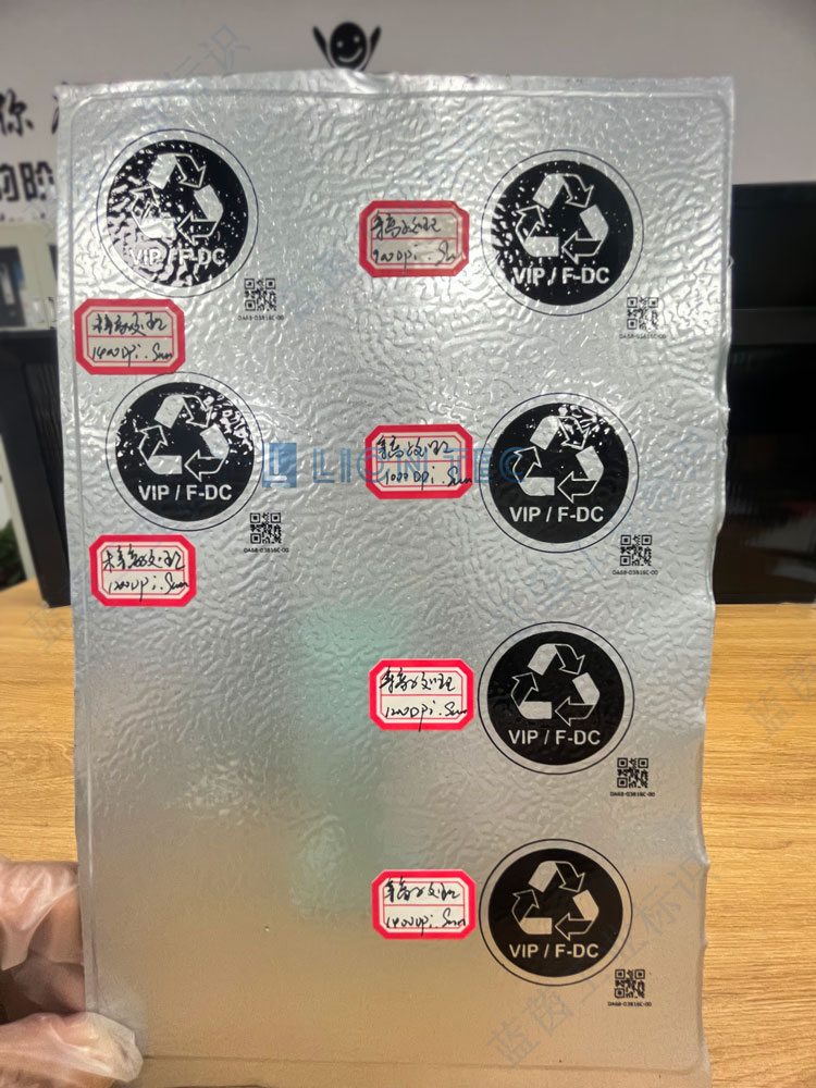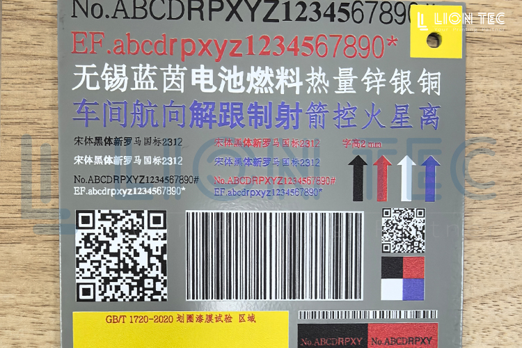 UV噴碼機(jī)在軍工不銹鋼鋁板上噴印文字圖案等標(biāo)識(shí)客戶要求:鮮艷 彩色對(duì)比度 字體明顯 附著力好 厚度適中同行打樣:字體暗沉 對(duì)比度不好 特別是黃色區(qū)域 達(dá)不到客戶需求我們采用多pass彩色噴印