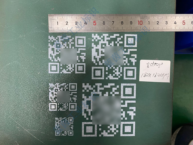 造船廠鋼板鍍漆表面30mm遠(yuǎn)距離二維碼UV噴印效果
