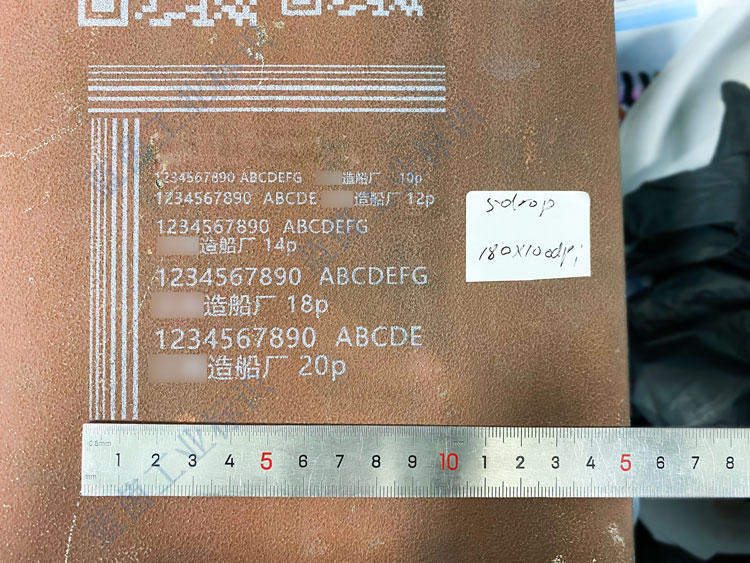 造船廠鋼板鍍漆表面30mm遠(yuǎn)距離二維碼UV噴印效果