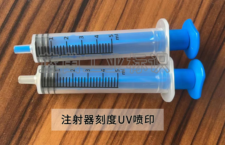?UV噴碼機設(shè)備打印注射器產(chǎn)品上的logo和刻度等標(biāo)識信息!無板印刷,高效環(huán)保!